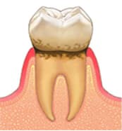 歯周ポケットが深くなるほか、歯を支える歯槽骨の破壊がはじまり、歯垢や歯石がさらに歯周ポケットにたまりやすくなります。