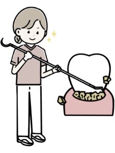 歯肉の縁から歯の方に付着した歯石の除去(縁上スケーリング)、歯垢・歯石除去(SRP)、歯面清掃、PMTCなどをおこない、徹底的にお口の中を綺麗にします。