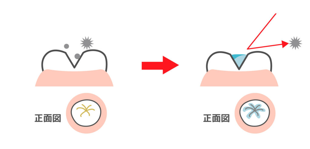 奥歯は細かくて複雑な溝があるため、虫歯になりやすく、フッ素の効果も期待しにくい部分です。